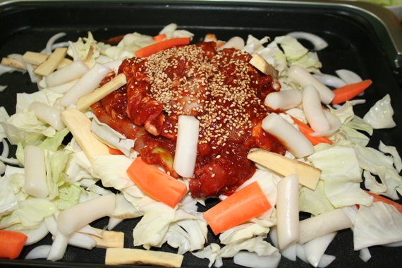 ダッガルビの作り方 -- 盛り沢山の野菜と鳥の鉄板焼き(닭갈비)のレシピ